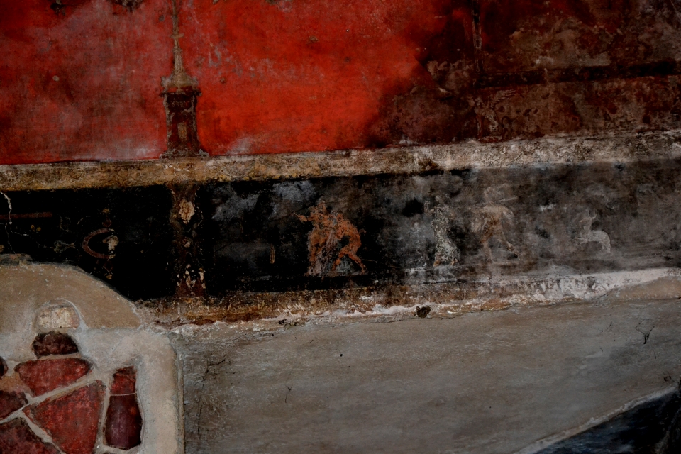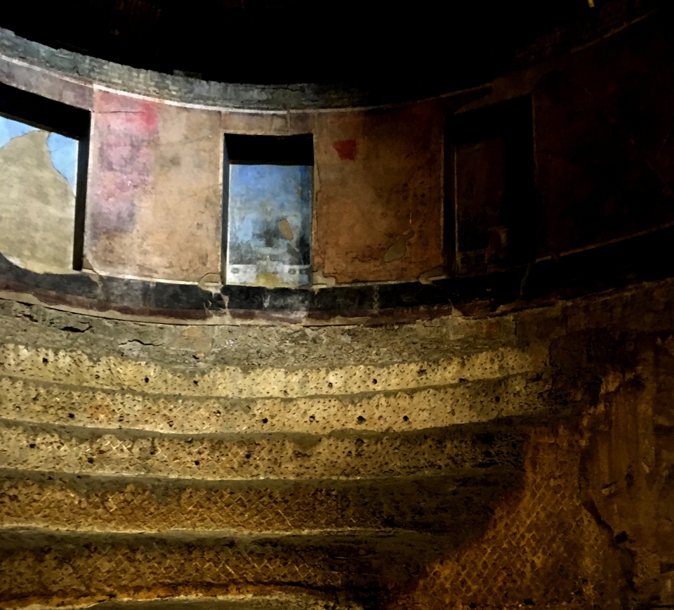 Scendendo da una lunga rampa avremo accesso ad una bellissima aula anticamente interamente affrescata: non era altro che una parte della splendida villa che Mecenate si fece costruire sull’Esquilino!