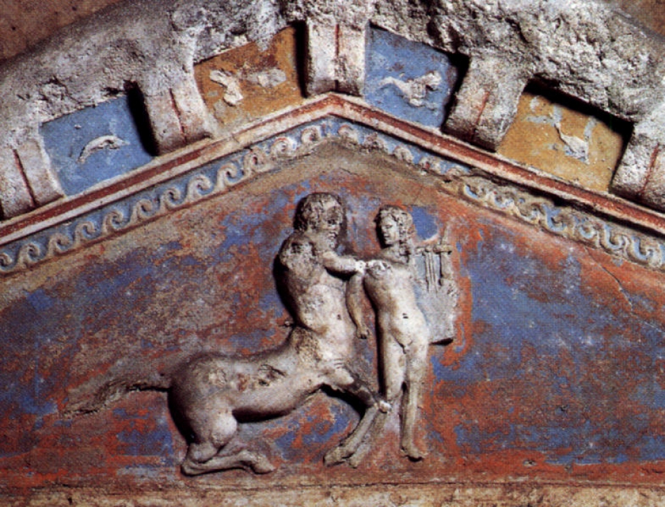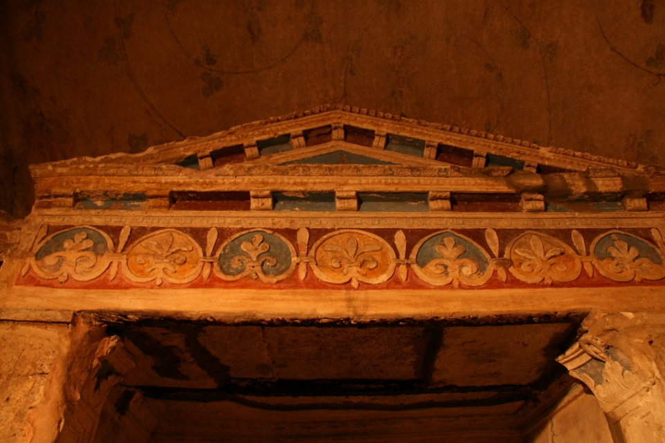 Altre nicchie alle pareti presentano eleganti decorazioni in stucco a tema mitologico: troviamo rappresentati Dioniso, Orfeo, il centauro Chitone ed Achille ... tutte decorazioni che alludono ai due destini, diversi e opposti, riservati alle anime buone e malvage nell’aldilà. In un luogo destinato ai defunti si voleva dunque illustrare il viaggio dopo la morte.