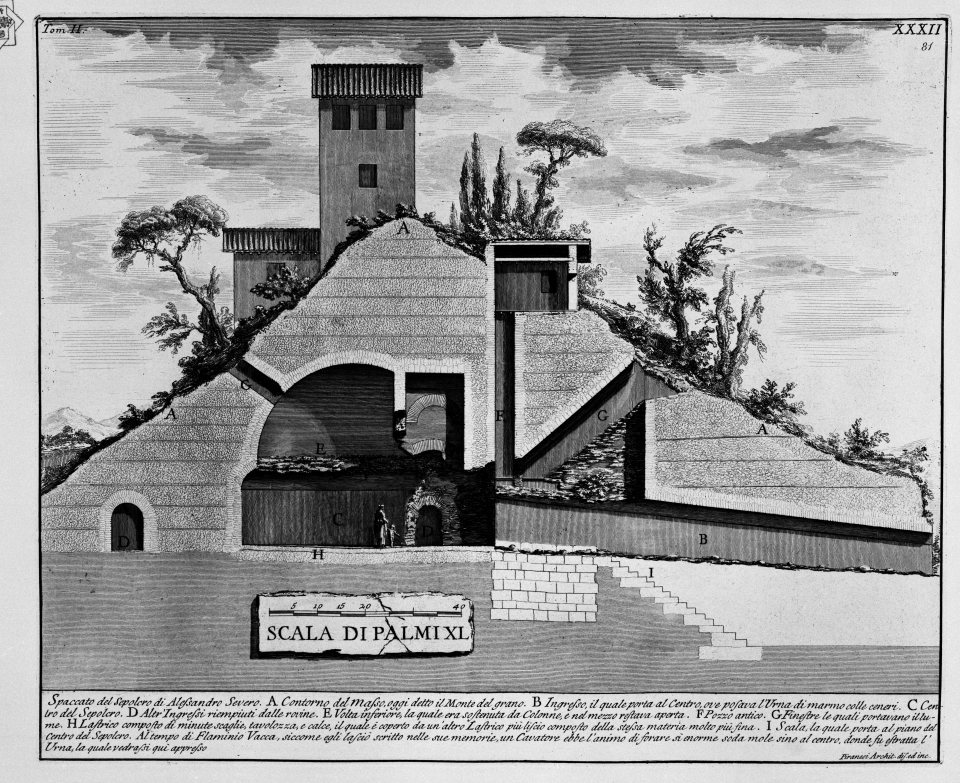 Non ci si accorda ancora oggi sul personaggio per il quale fu costruita questa tomba: se il ritrovamento di un sarcofago raffigurante l’imperatore Alessandro Severo, vissuto nel III sec. d.C., farebbe infatti propendere per questo personaggio, alcuni studiosi propongono invece una datazione al II sec. d.C.