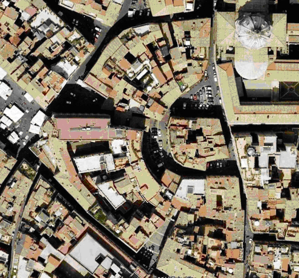 Pompeo aggirò il problema costruendoun tempio dedicato a Venere Genitrice su un alto podio rialzato, la cui gradinata di accesso era in realtà la cavea di un teatro! Cosa rimane oggi di questo spettacolare edificio? Se percorrete via del Biscione verso Campo dei Fiori...vi renderete conto di come la conformazione urbana ricalchi esattamente la forma della cavea dell'antico teatro, e di come tutto l'impianto viario della zona dipenda dalla presenza, ormai intangibile, di questo colosso dell'antica Roma!