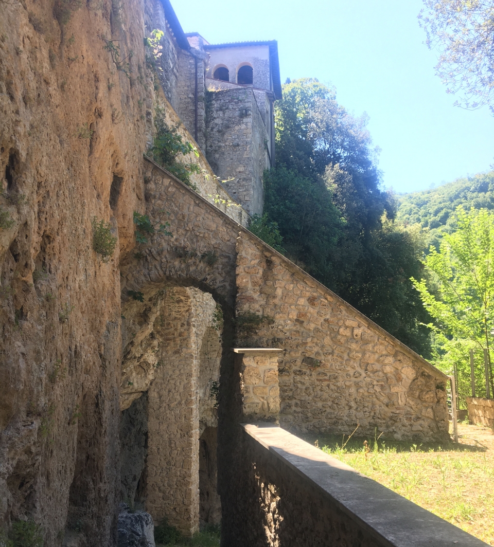 Lo stesso luogo, a strapiombo sulle acque del fiume, venne utilizzato tra V e VI secolo da alcune comunità di monaci anacoreti come luogo di raccoglimento e meditazione, tra cui, ospite speciale, San Benedetto! Durante il nostro percorso avremo modo di raccontare anche questa vicenda, entrando in alcune cappelle scavate nella roccia o ricavate da grotte naturali…