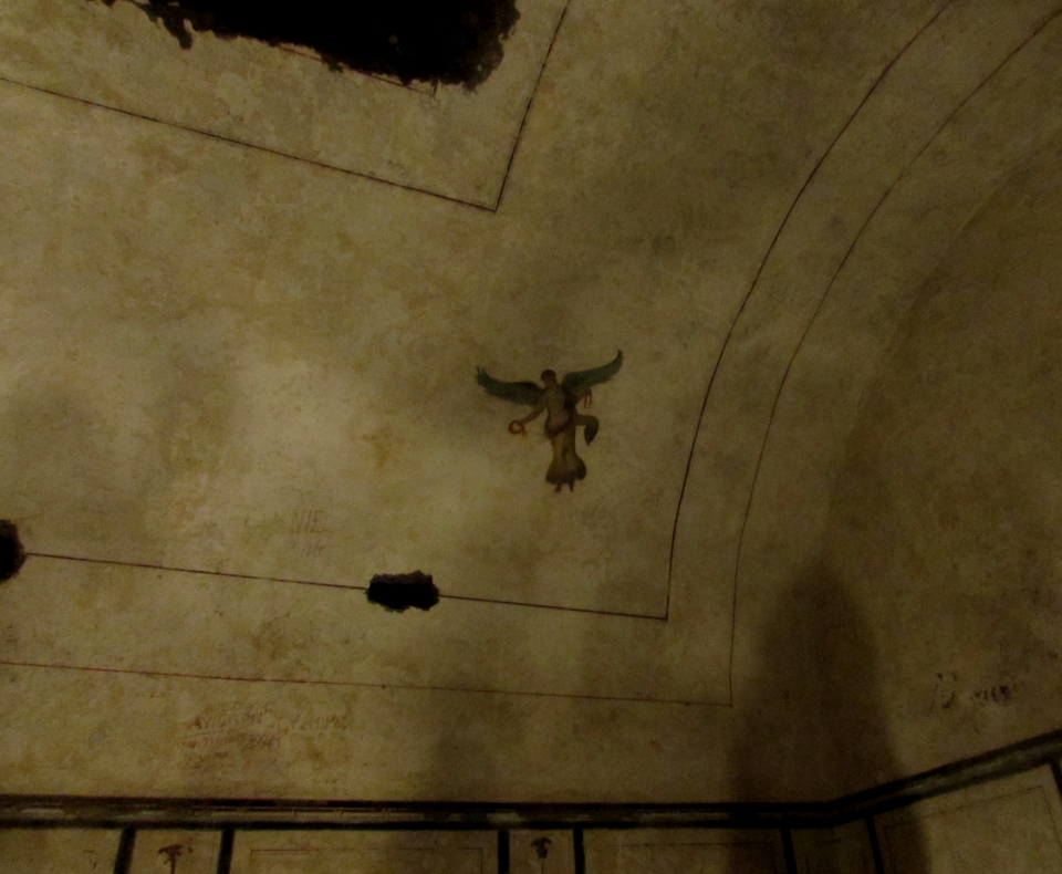 L’interno della piramide non era nient’altro che la cella sepolcrale: una stanza interamente dipinta che doveva ospitare i resti del defunto, oltre al suo prezioso corredo funerario, oggi scomparso. Come nelle vere piramidi egiziane, la camera sepolcrale, una volta riempita, veniva murata e non era dunque più accessibile dall’esterno.