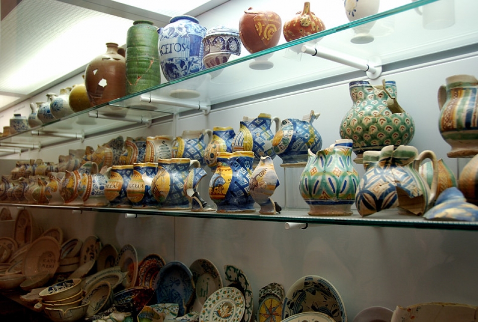 Partendo dall’area esterna alle sale, saremo subito catapultati nell’antica Roma, tra i resti del portico che sorgeva a fianco del Teatro di Balbo. Nelle sale al piano terra troveremo poi il racconto della storia di questo teatro e della vicina Porticus Minucia Frumentaria. Il primo piano ci mostrerà invece la storia del quartiere dopo l’abbandono del teatro: dopo il grande incendio dell’80 d.C. infatti il teatro fu abbandonato e la zona occupata da un vero e proprio distretto abitativo con case, latrine e botteghe. Passando al secondo piano, entreremo poi nel vivo della storia medievale del quartiere: i numerosi oggetti esposti che provengono dagli scavi archeologici ci sveleranno infatti i molteplici aspetti della cultura materiale e artistica del periodo. Cosa dire infine del periodo più recente?! Ce lo racconteranno le strutture stesse del museo: l’area dell’antico teatro di balbo fu infatti occupata nel Rinascimento dalla chiesa e dal convento di Santa Caterina dei Funari: la gran parte degli edifici del complesso fu distrutta negli anni ‘40 del XX secolo, ma alcune delle strutture furono risparmiate e sono proprio quelle in cui oggi si trova il museo.