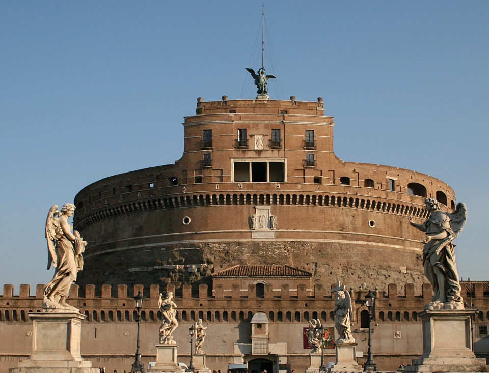 Castel Sant'Angelo domina il panorama di Roma. I romani sono talmente abituati alla sua enorme mole, che si staglia oltre il Tevere e al di sopra delle splendide statue di Ponte Sant'Angelo, che raramente lo visitano! Il museo però è uno dei più incantevoli dell'Urbe. Costruito tra 135 e 139 d.C. come mausoleo per Adriano, il monumento era costituito da un grande cubo di base rivestito in marmolunense. Al di sopra del cubo era costruito un tamburo realizzato e ancora sopra sorgeva un tumulo di terra alberato circondato da statue marmoree.
