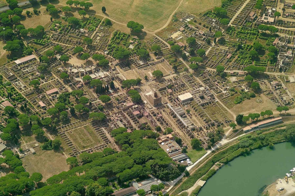 Ostia era una piccola città alla foce del Tevere, come ci dice il suo stesso nome che deriva da Ostium (Foce). Nasce come cittadella fortificata, costruita dai romani per difendere la foce del Tevere e la costa laziale: è il castrum infatti il primo nucleo essenziale della città risalente al IV secolo a.C. e ancora oggi visibile.