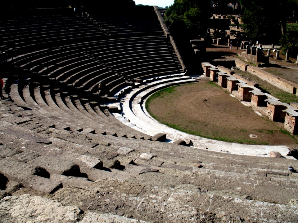 La nostra visita vi porterà alla scoperta dei luoghi principali della citta: il foro coi suoi templi monumentali, il magnifico teatro ancora oggi utilizzato per le rappresentazioni, il piazzale delle corporazioni coi suoi bellissimi mosaici in bianco e nero. E poi le case, le botteghe e le strade che proveremo ad immaginare affollate e frequentate, così come doveva essere nella vita quotidiana dell’antica Ostia.