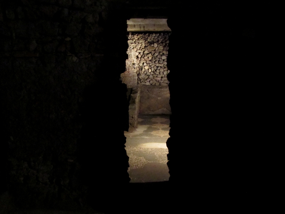 Prima di riemergere alla luce del giorno, non mancherà occasione di ammirare antiche pitture superstiti, mosaici pavimentali e alcune lastre marmoree riutilizzate varie volte e legate alla storia più recente del complesso.