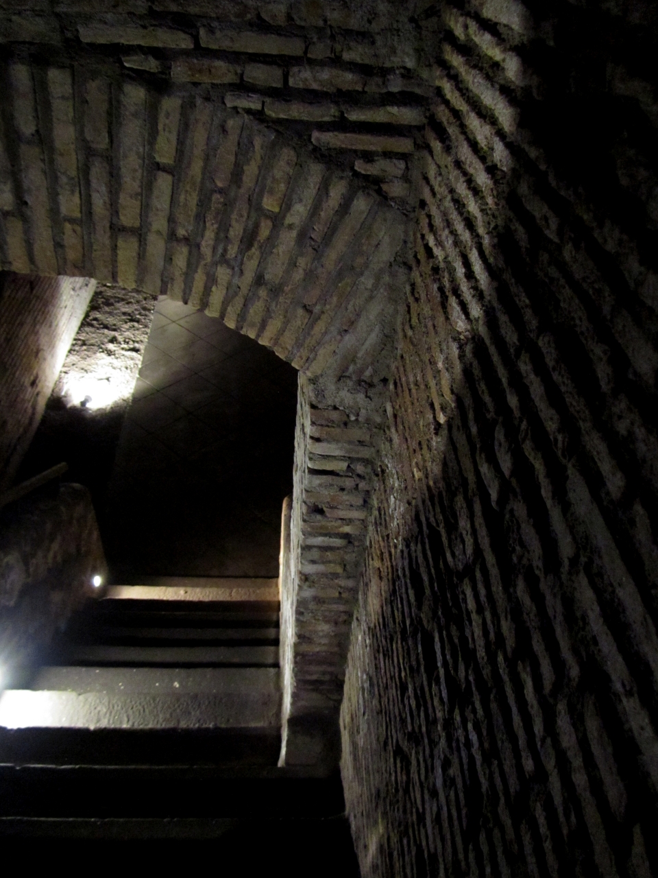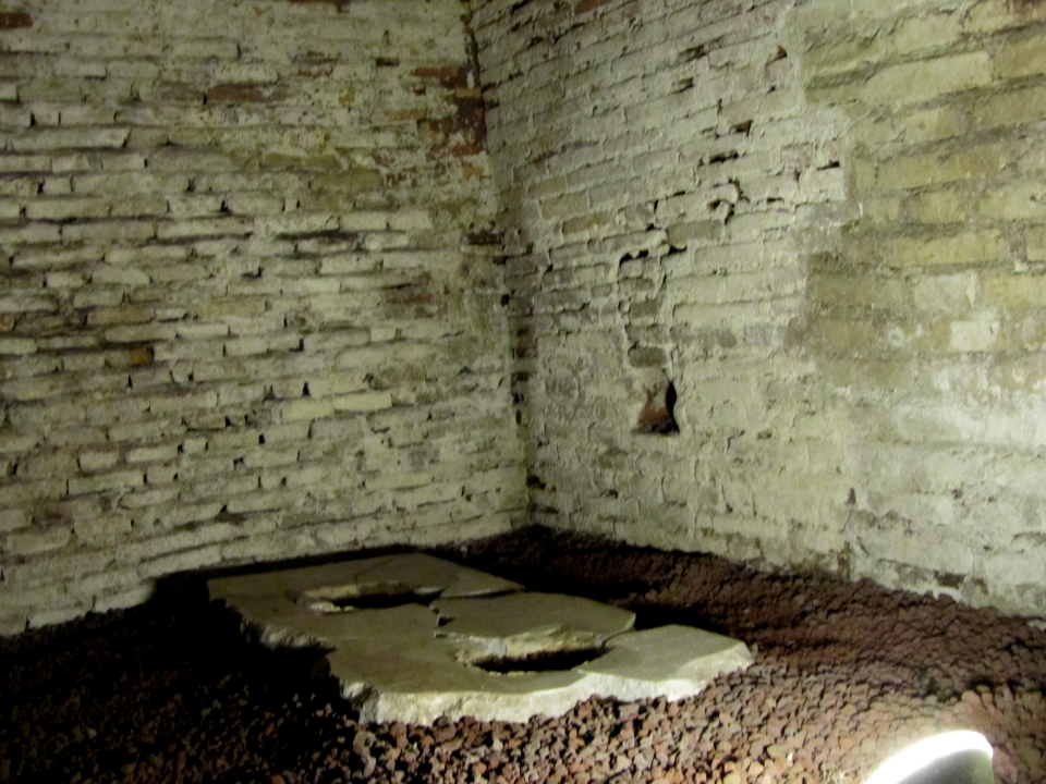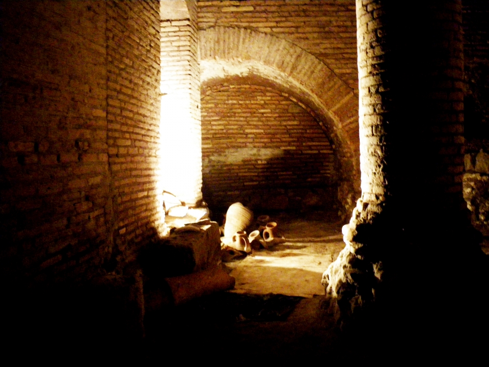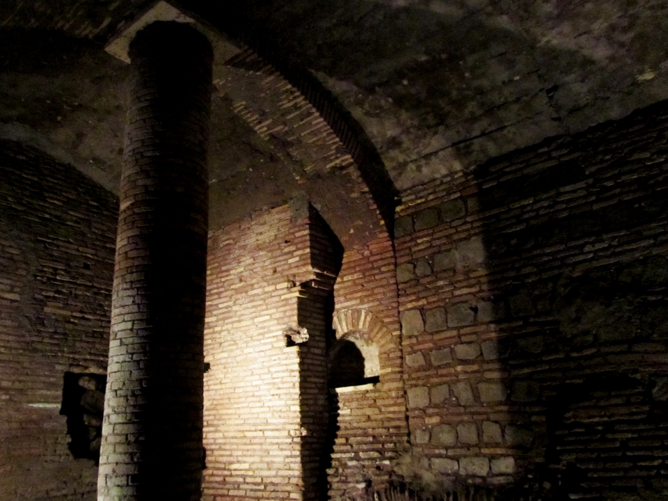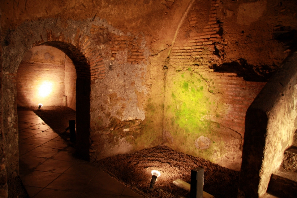 Accedendo al palazzo dal suo ingresso al piano terra, si scorge sulla sinistra una piccola porta in metallo: sarà quello il nostro accesso ai sotterranei del palazzo e all’antico distretto romano. Scendendo una scala raggiungeremo infatti il punto più profondo del sito (8 metri sotto il livello moderno) per visitare i resti del piano terreno di questo complesso: magazzini collocati lungo il fiume, destinati ad accogliere le derrate alimentari che, attraverso il fiume, arrivavano al centro di Roma da tutto l’impero.