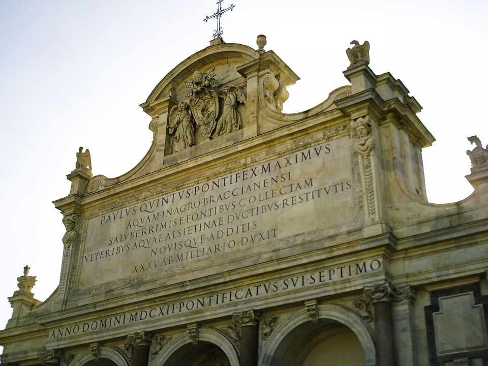 Il Fontanone dell’Acqua Paola si trova sul punto più alto del Gianicolo. Si tratta di una “mostra dell’acqua”, una fontana monumentale voluta all’inizio del 1600 da papa Paolo V Borghese, per celebrare il restauro dell’antico Acquedotto Traiano. La figura di Papa Paolo V è ricordata infatti dallo stesso nome che assume la fontana “Acqua Paola” e dagli stemmi della famiglia – il drago e l’aquila– che compaiono in diversi punti.