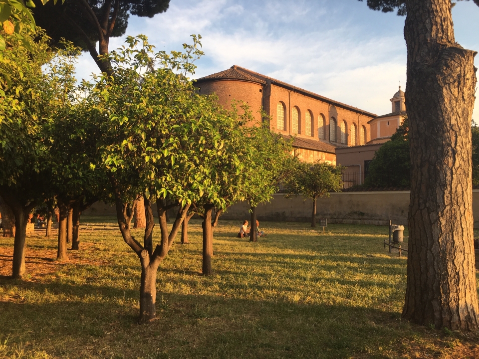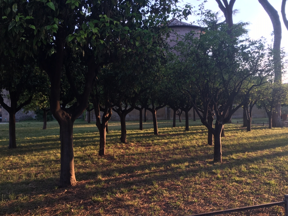 Una camminata che si snoda, quasi al tramonto, sul colle più tranquillo di Roma: l’Aventino. Denso di storia e di leggende (basti pensare a Remo, che lo scelse in opposizione al Palatino di Romolo per avvistare gli uccelli in volo, o alle lotte politiche tra patrizi e plebei, con le famose Secessioni dell’Aventino), il colle è ancora oggi un’area isolata e calma, dominata soprattutto dalla presenza di villette, chiese e giardini. Saranno proprio i giardini il fil rouge del nostro percorso. Partiremo dalla storia del roseto comunale, aperto nel 1950 nell’area precedentemente occupata dall’Orto e dal cimitero degli Ebrei, e avremo modo di osservare i cespugli in fiore sullo sfondo maestoso del palazzo Imperiale del Palatino. Dopo un’introduzione storica, i partecipanti gireranno liberamente all’interno del giardino, in quanto in base alle disposizioni sanitarie non è possibile effettuare visite guidate di gruppo all’interno dell’area. Usciti dal roseto, proseguiremo lungo i viali del colle, per osservare la bella architettura di ville e villini, e costeggiando l’imponente basilica di Santa Sabina giungeremo al giardino degli Aranci. Il famosissimo giardino urbano si estende sull’area di un forte medievale: un castello costruito dai Crescenzi ed ingrandito dai Savelli alla fine del XIII secolo, di cui si nota ancora la muratura possente. Il nome deriva dai filari di aranci amari che caratterizzano la grande terrazza, piantati qui in ricordo di San Domenico, che fondò qui il proprio convento. Il piccolo parco come lo vediamo oggi fu allestito nel 1932 da Raffaele De Vico, e da qui si gode di una delle più belle viste su Roma. Due piccoli giardini totalmente diversi nella forma e nel significato, creati a distanza di pochissimi anni l’uno dall’altro, costituiranno l’inizio e la fine del nostro percorso, alla scoperta dell’anima verde dell’Aventino.