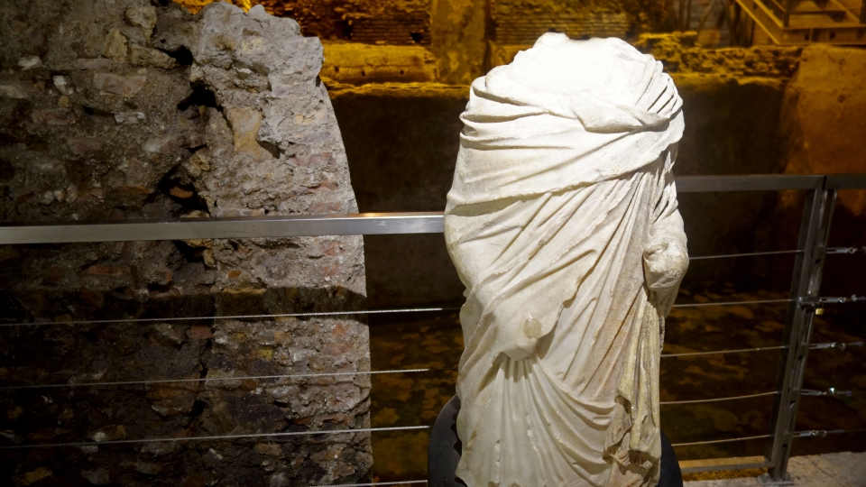 Entreremo infatti nel piano interrato de La Rinascente dove potremo ammirare, recentemente rinvenute, ben 15 arcate dell’antico acquedotto. Durante i lavori per il nuovo grande megastore, sono stati trovati i resti del grande acquedotto e di tutto in quartiere antico che vi era intorno. Se questi ultimi sono stati rinterrati per motivi tecnici, il grande acquedotto trionfa in fondo alla sala in tutta la sua magnificenza e ci racconta, grazie un gioco di luci e di suoni, la storia di tutto ciò che lo circondava.
