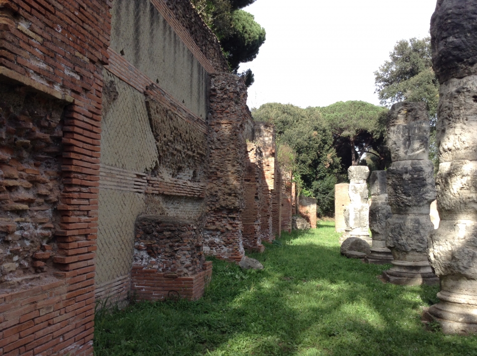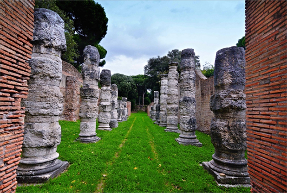 Durante la nostra visita, passeggeremo tra ciò che è rimasto di questo grande complesso commerciale: i moli dell’antico porto di Claudio oggi insabbiati, i magazzini a più piani per conservare le merci, gli attracchi e le rampe per lo scarico delle merci. Attraversando prati verdi e intrecci di strutture in mattoni, e ricostruendo con l’immaginazione il traffico di merci e il viavai di persone che attraversavano questi luoghi, giungeremo al bordo del grande bacino esagonale: oggi in proprietà privata della famiglia Sforza Pallavicini e ancora pieno d’acqua, è visibile dall’alto, dal piano più alto di uno dei blocchi di magazzini imperiali ancora in piedi.