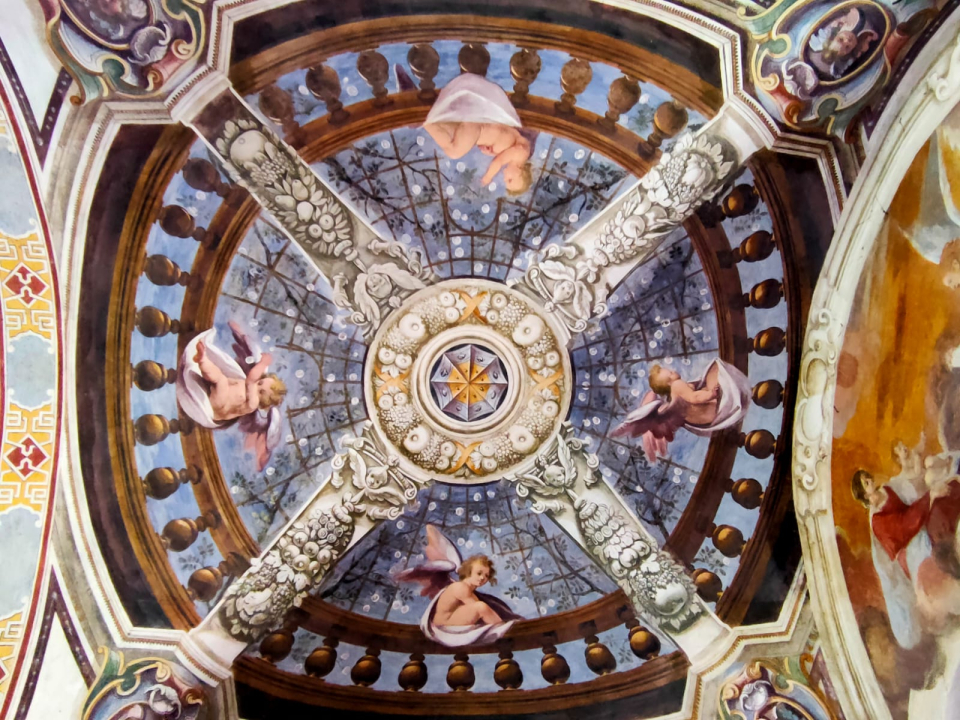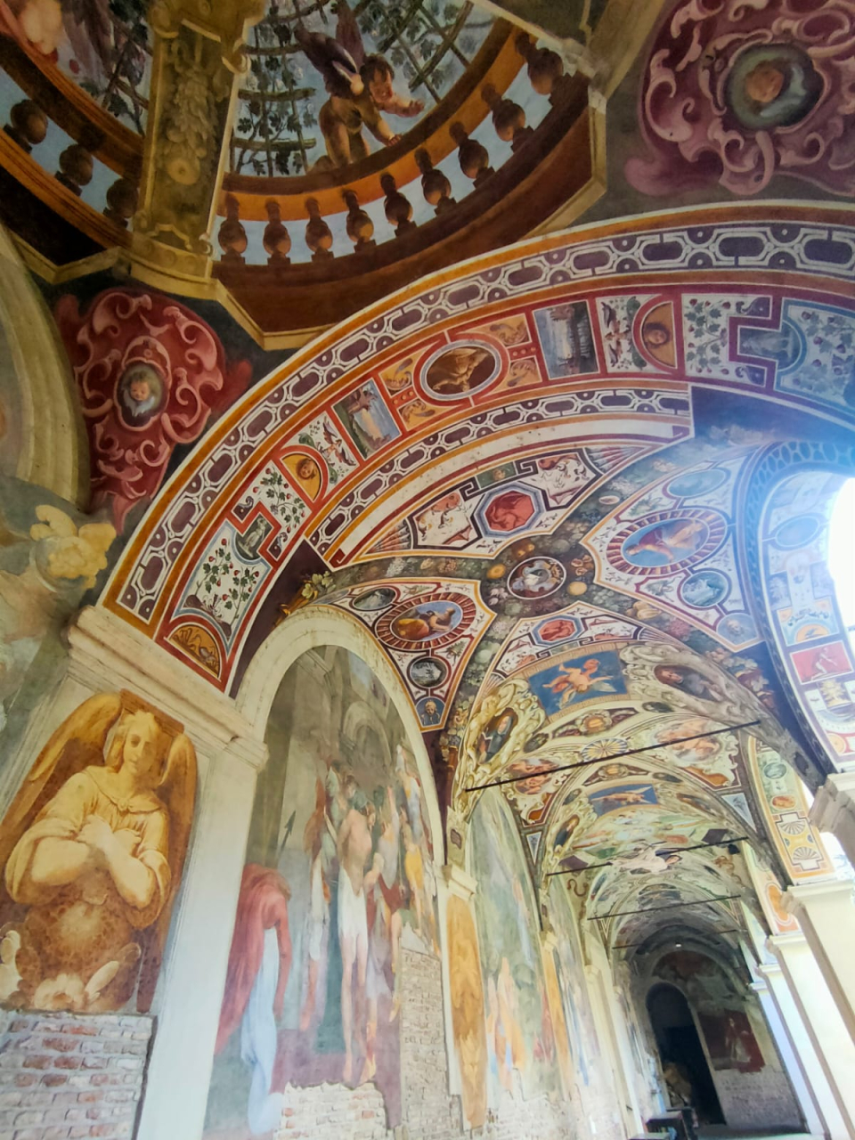In questo surreale e a volte bizzarro pastiche di opere e stili di periodi diversi, il posto d'onore spetta sicuramente al chiostro del vecchio convento, la cui presenza è totalmente insospettabile per chi osserva il complesso dall'esterno. Costruito già nel XIII secolo ma riedificato tra 1559 e 1569, il chiostro venne dipinto a partire dal 1603 da Francesco Nappi, con tinte vivacissime e colori luminosi.