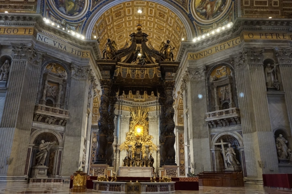 Da un lato, infatti, non si può rimanere indifferenti alla storia del martirio dell’apostolo Pietro e alla storia del santuario martiriale costruito sulla sua tomba all’epoca di Costantino. Dall’altro, una volta entrati si rimane quasi storditi dall’immensità e dalla ricchezza decorativa e materiale della chiesa, espressione innegabile del potere pontificio. Tradizione e spiritualità convivono quindi con potere e lusso, il messaggio religioso e la ricchezza abitano lo stesso luogo e sono entrambi percepibili.