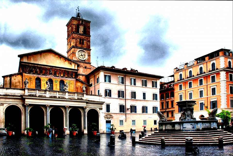 La sua storia è antichissima: divenne formalmente parte della città con Augusto, che delineò la regio XIV TRANSTIBERIM (al di là del Tevere) e venne incluso nelle mura aureliane del III secolo. Il suo carattere suburbano ha portato Trastevere ad essere già in epoca romana patria prediletta per le grandi ville suburbane, e perfino Cesare decise di costruire qui i propri horti. Un carattere “campagnolo” che ha accompagnato il quartiere per tutta la sua esistenza, basti menzionare la bellissima Villa Farnesina di Agostino Chigi, eretta nei primi anni del ‘500. Ancora oggi Trastevere è un quartiere sui-generis, che sembra solo marginalmente toccato dalle rivoluzioni urbanistiche dell’Urbe. Ad esempio, conserva ancora l’impianto medievale, con i vicoli tortuosi, le piazzette ombrose, i palazzetti signorili accanto alle casupole dei ceti meno abbienti. Conserva ancora molti elementi caratteristici, come le targhe dei mondezzari, le tabule di proprietà, i tabernacoli dedicati alla Vergine. Ancora oggi ci tramanda la memoria di personaggi e protagonisti celebri della città, come Prospero Farinacci, Er Tinea, la Regina Cristina di Svezia; e soprattutto custodisce moltissime tradizioni e leggende popolari e folkloristiche, basti pensare alla vicenda della Fons Olei o alla notissima festa della Madonna de Noantri.