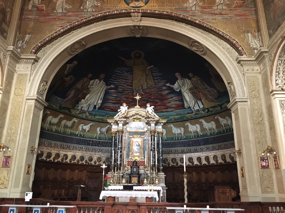 Scenderemo nella “cripta” (in realtà, vera e propria chiesa inferiore) della basilica, per cercare di immaginare le dimensioni e la severità decorativa dell’antico luogo di culto, e per comprenderne l’interro e il riuso. Da qui saliremo nella basilica odierna, plasmata dal rifacimento di Papa Urbano VIII Barberini nel XVII secolo, per concludere il nostro viaggio nella storia e per osservare a distanza ravvicinata il bellissimo mosaico absidale. Quest’opera è una testimonianza dall’importanza eccezionale, che ci permette di ricostruire la passata grandezza della chiesa e di apprezzare lo straordinario impatto visivo dell’arte cristiana poco dopo i suoi esordi.