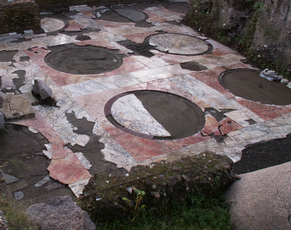 Partiremo affacciandoci sui meravigliosi pavimenti in marmo del Tempio della Pace, che occupa quest’area a partire dall’epoca di Vespasiano. Frammenti di queste ricche pavimentazioni sono emersi nei recenti scavi effettuati da Roma 3. Seguiremo le modifiche che vengono effettuate nell’edificio e il cambiamento della destinazione d’uso, arrivando fino al VI secolo d.C., epoca in cui in un’aula dell’antico tempio viene fondata la prima chiesa cristiana del foro, dedicata ai Santi Cosma e Damiano.